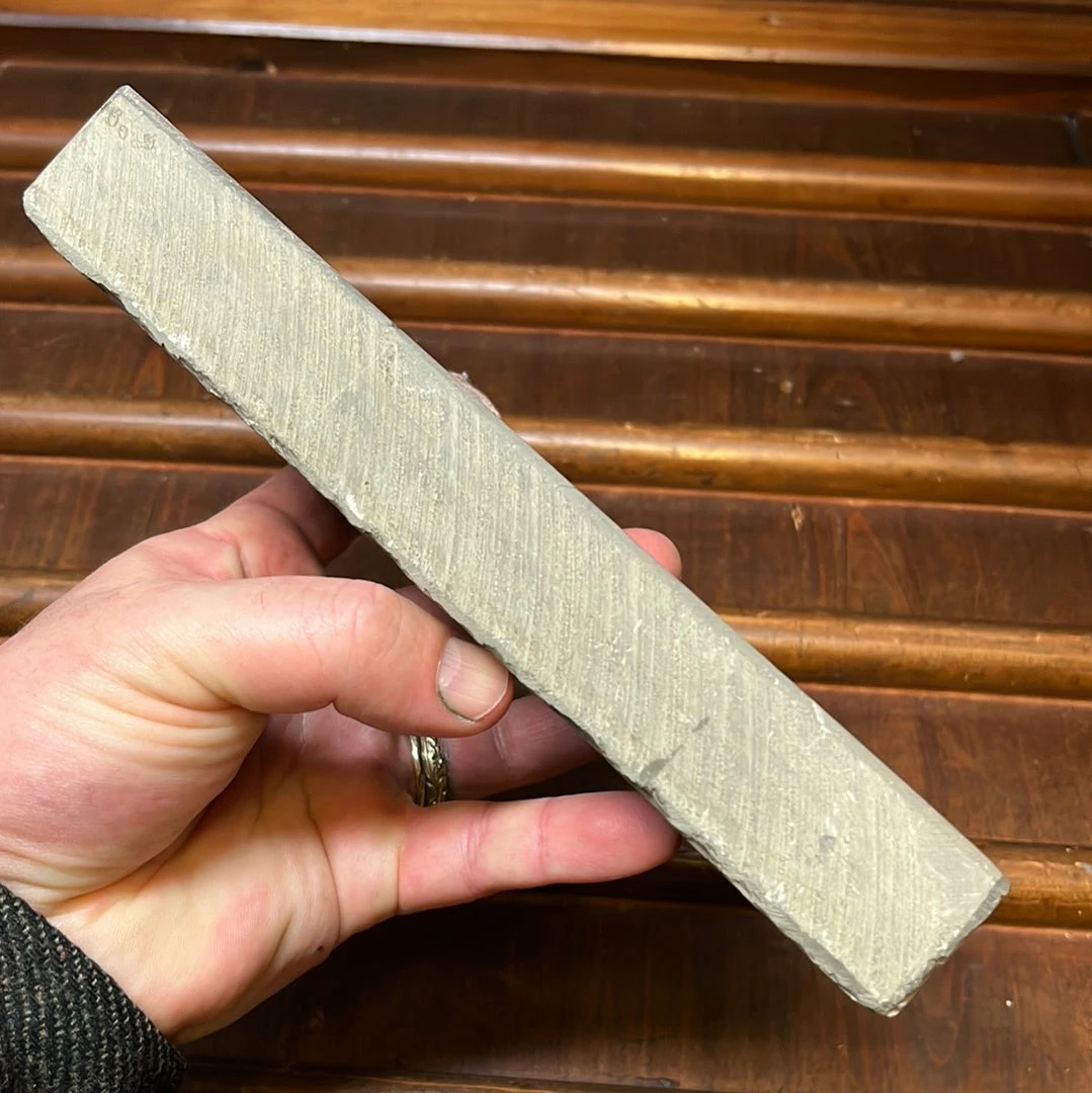 Old stock stone from the Tomaeย strata of the Ohira mine. Hard and a bit scratchy with too much pressure, it needs to be finessed to create a very bright sub mirror finish, I found that I couldnt avoid getting a very bright but slightly scratchy looking finish, not deep scratches but not super mellow looking. I think better can be coaxed out of it with a more thorough polishing of the surface of the stone however.ย