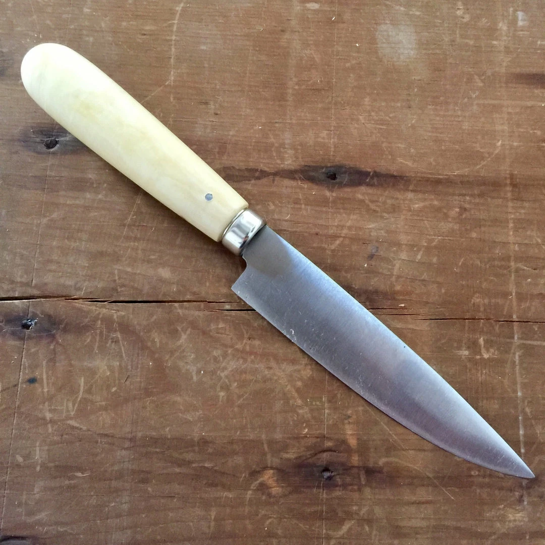 Pallares 4″ carbon steel knife with boxwood handle. Great for the table or as a utility knife. Handmade in Solsona, Spain.