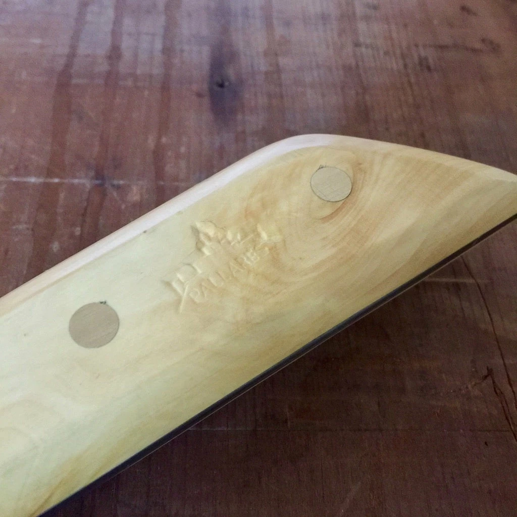 Pallares Butcher Cleaver. 9″ full tang carbon steel blade with riveted boxwood handle. Handmade in Solsona, Spain.