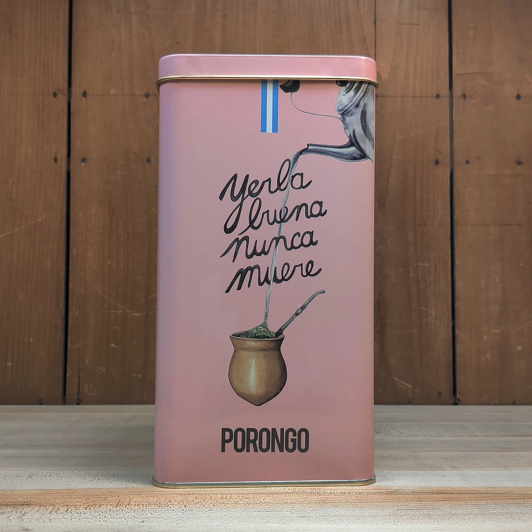 BC favorite, Porongo Yerba Mate — tin can for dispensing yerba mate