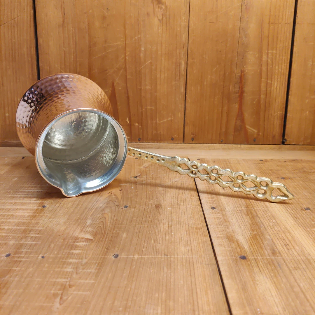 We’re happy to have this copperware in the shop. Turkey has a long tradition of metalworking in both ferrous and non-ferrous metals, these represent a traditional design that utilizes copper’s excellent heat transfer; there is a good reason why these copper pots have endured.