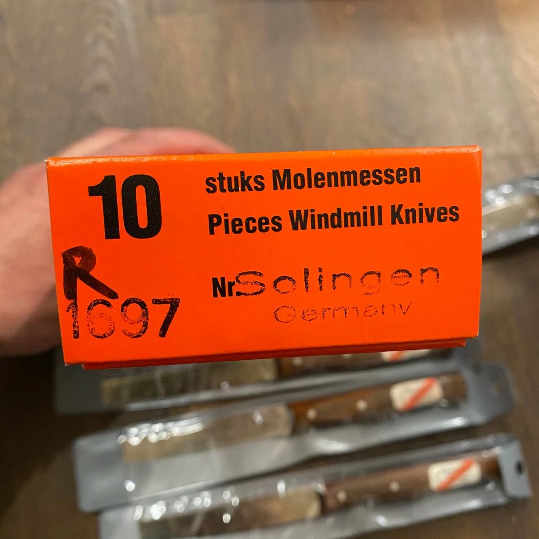 Unused vintage 1960âs-70âs era Robert Herder Windmuhlenmesser tomato knives made for the US market. The current president of Robert Herder confirmed the age of these with the specific short windmill blades on the stamp (a mistake from a tool maker doing the stamp) and the hand stamped item number on the box (she would stamp these boxes as a kid in the family knife works on vacations from school). A great time capsule here and testimony to the high quality standards that Robert Herder Company still holds.