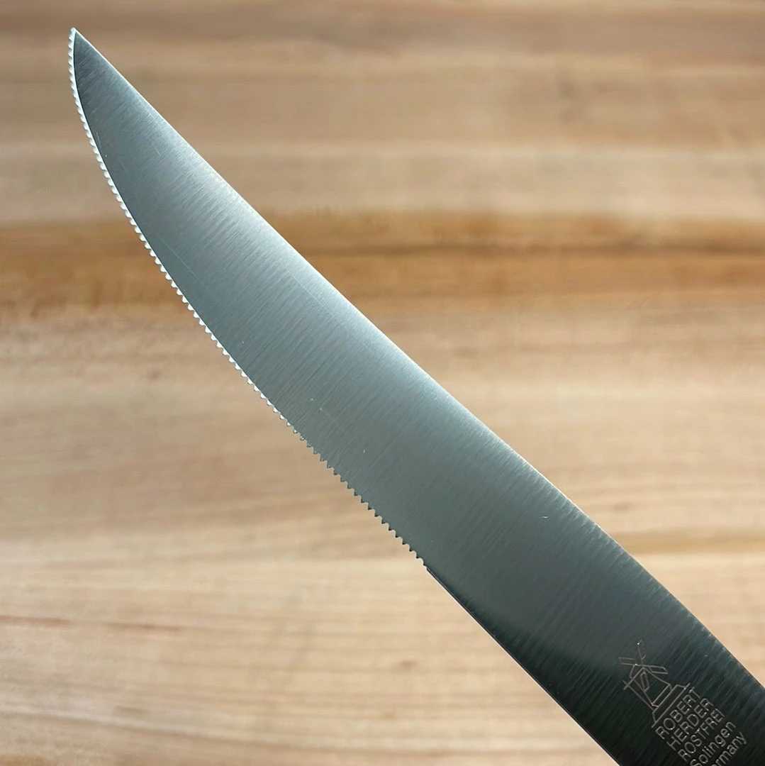 Robert Herder Windmühlenmesser knives are made in Solingen, Germany, and still utilize old hand-work techniques. Their fine, hand-ground blades are extremely light and ground thin- they offer a great cutting feel that is not possible with chunky, mechanized-ground blades. Paired with a slight convexity, it makes for reduced friction and sticking during cutting.