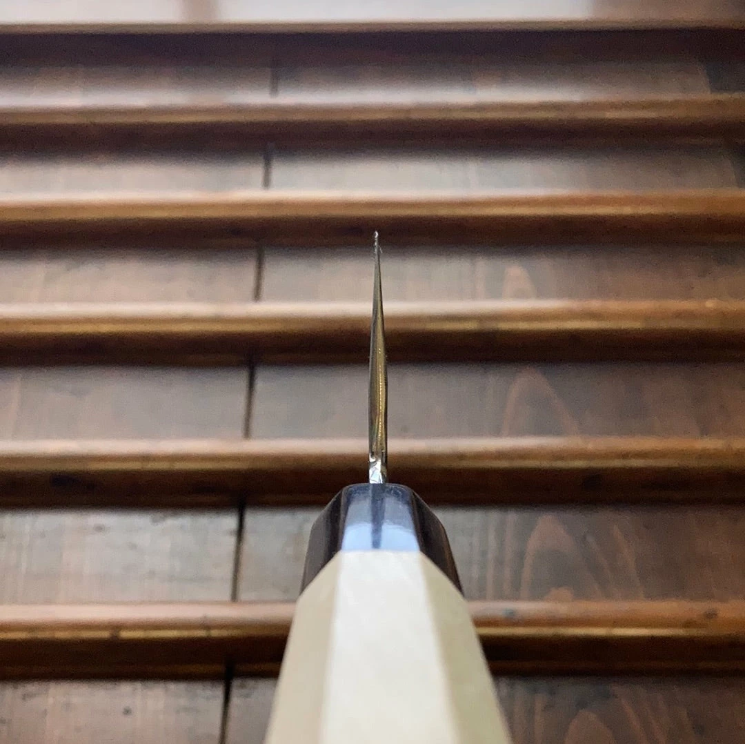 Choyo Aogami 1 knives are forged by Tanaka Hamono. Tanaka-san’s top level forging and heat treatments make for unusually easy sharpening, superb edge life and toughness.