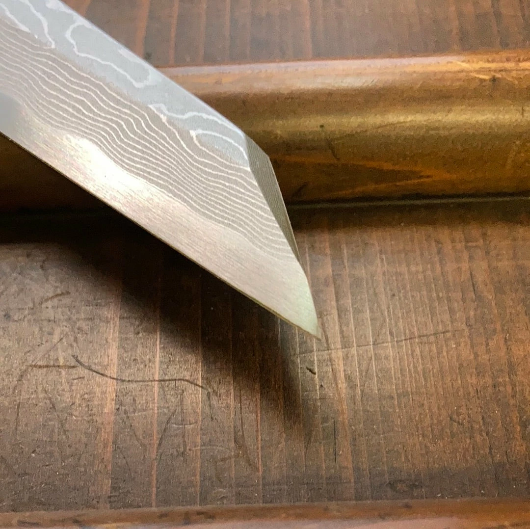 Kikuzuki Uzu and Kasumi blacksmiths are from Tanaka Hamono. Tanaka-san’s top level forging and heat treatments make for an unusual ease of sharpening and superb edge life and toughness.