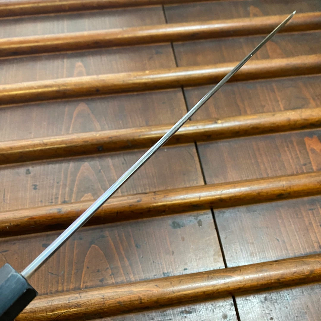 Sakai Kikumori ‘So-Ten’ 270mm Yanagi in Aogami Super.ย ย Octagonal ebony wood and water buffalo ferrule handle. Comes with saya.