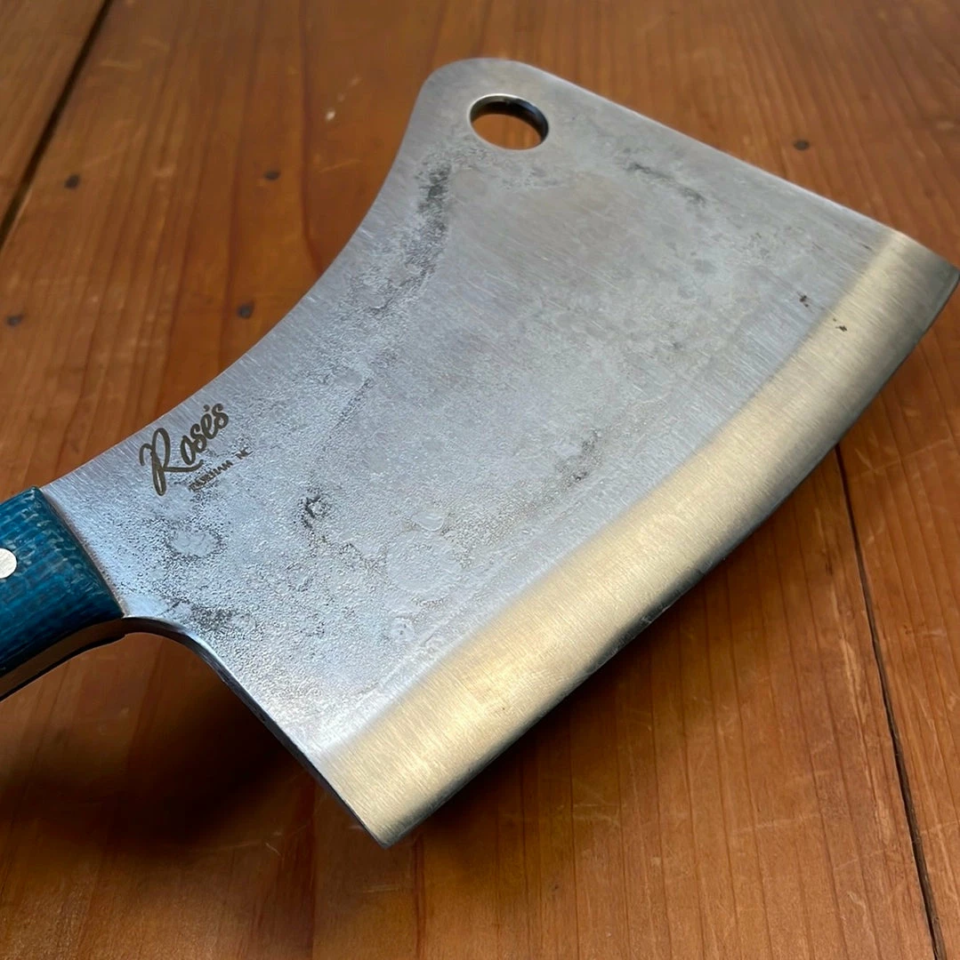 Handmade by Daniel Hilgenberg of Silverthorn Knife & Tool,ย 1084 carbon steel is a great material for butcher’s cleavers, tough and capable of taking and holding a good edge.ย