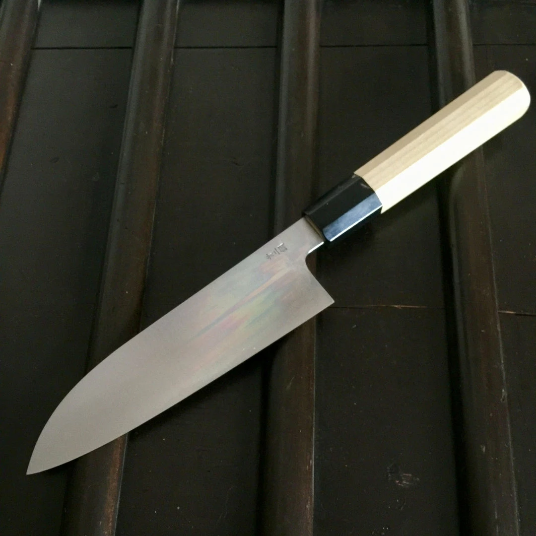 Hand made iron clad aogami 2 in Sakai Osaka Japan, forged at Shiraki Hamono by the super talented young smith Nakagawa-san and hand ground and finish sharpened at the Takada no Hamono workshop.