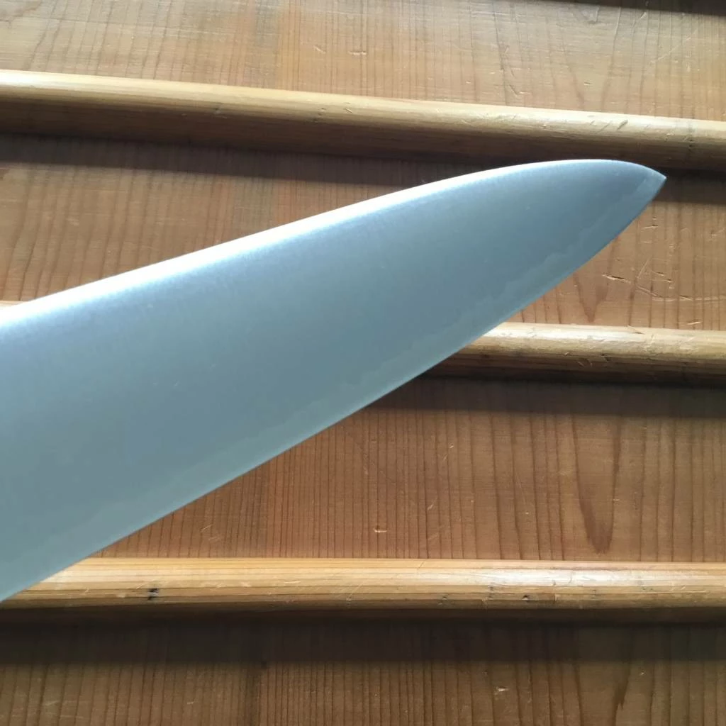 Tojiro 210mm R2 powder steel Gyuto knife with riveted western handle. HRC 64.