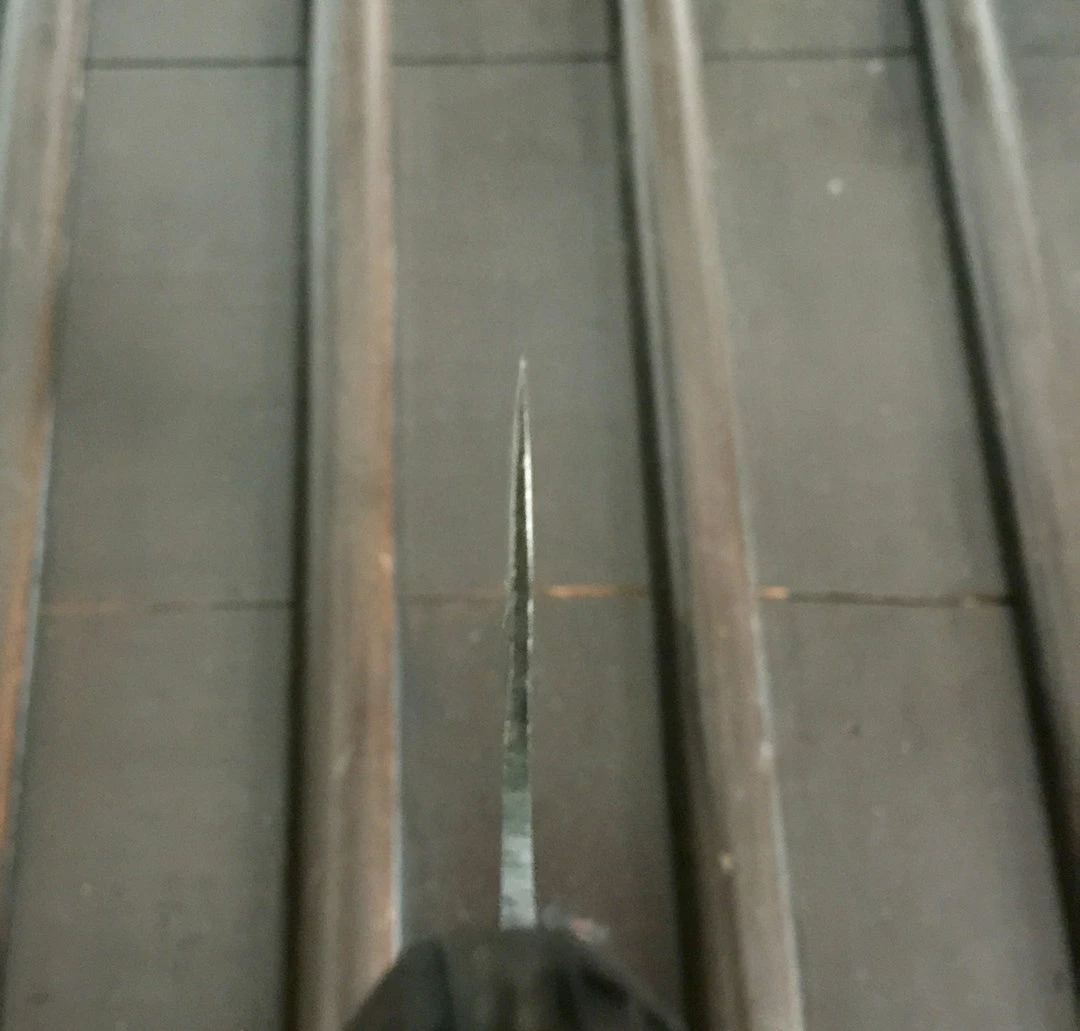 This is a reactive carbon steel. It should be mentioned that extra care is required, as the knife is not stainless and should be dried immediately after use. It will develop a dark patina with usage, but any orange rust should be removed with a light abrasive.