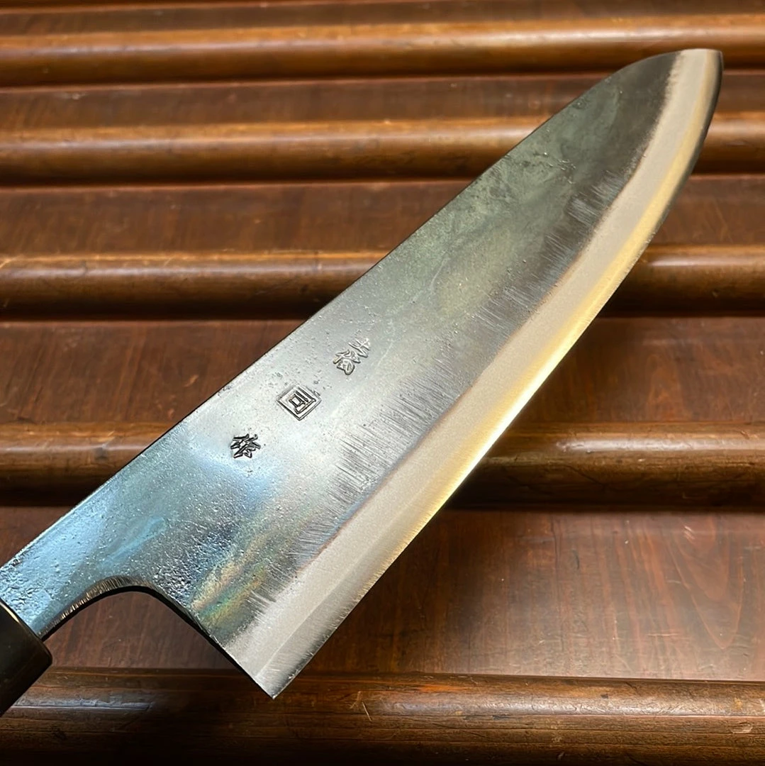 Tosa Tadayoshi 210mm gyuto. Shirogami 1 steel with iron cladding. D shaped ho wood handle with plastic ferrule.
