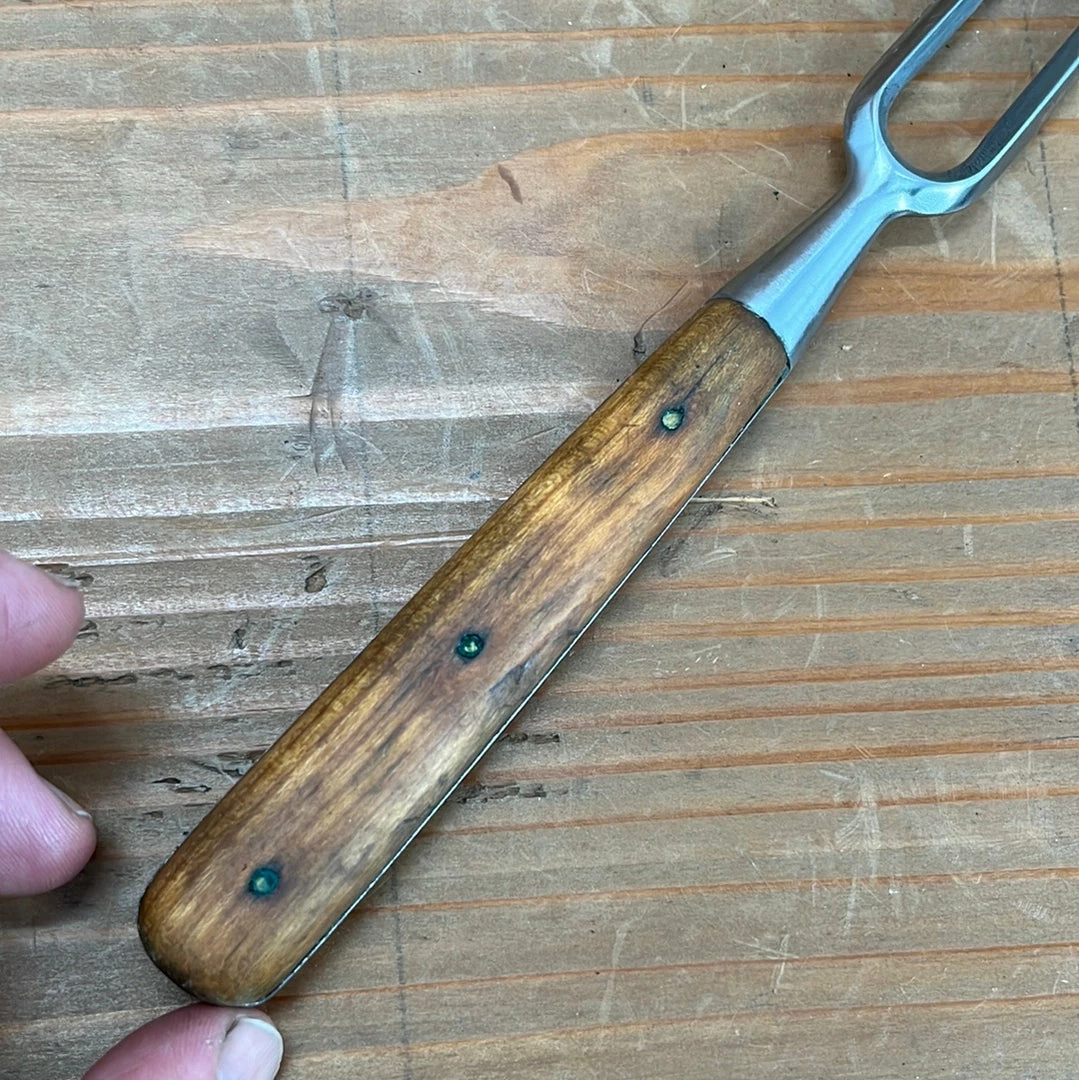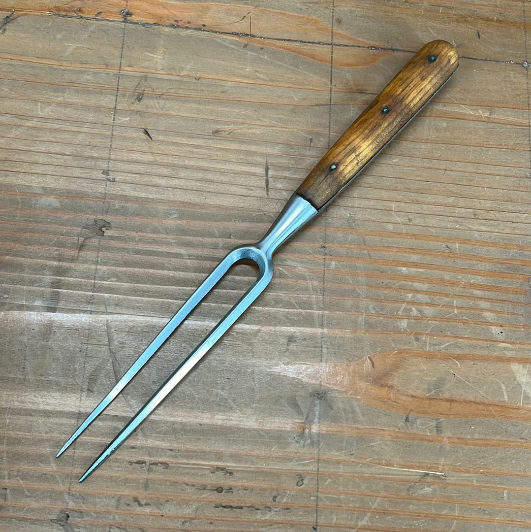 Mid sizeย bayonet carving fork with forged stainless tines andย solid woodย handle.ย
