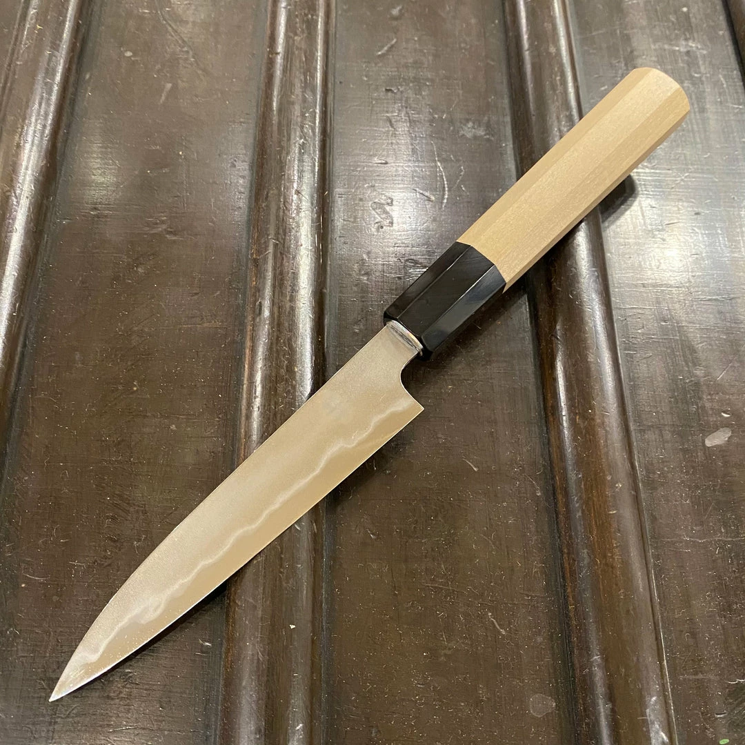 Fine cutting with excellent edge life and edge formation, these represent an exciting new generation of Sakai craftsmen putting out top quality work. We are super excited to be working with Takada no Hamono.
