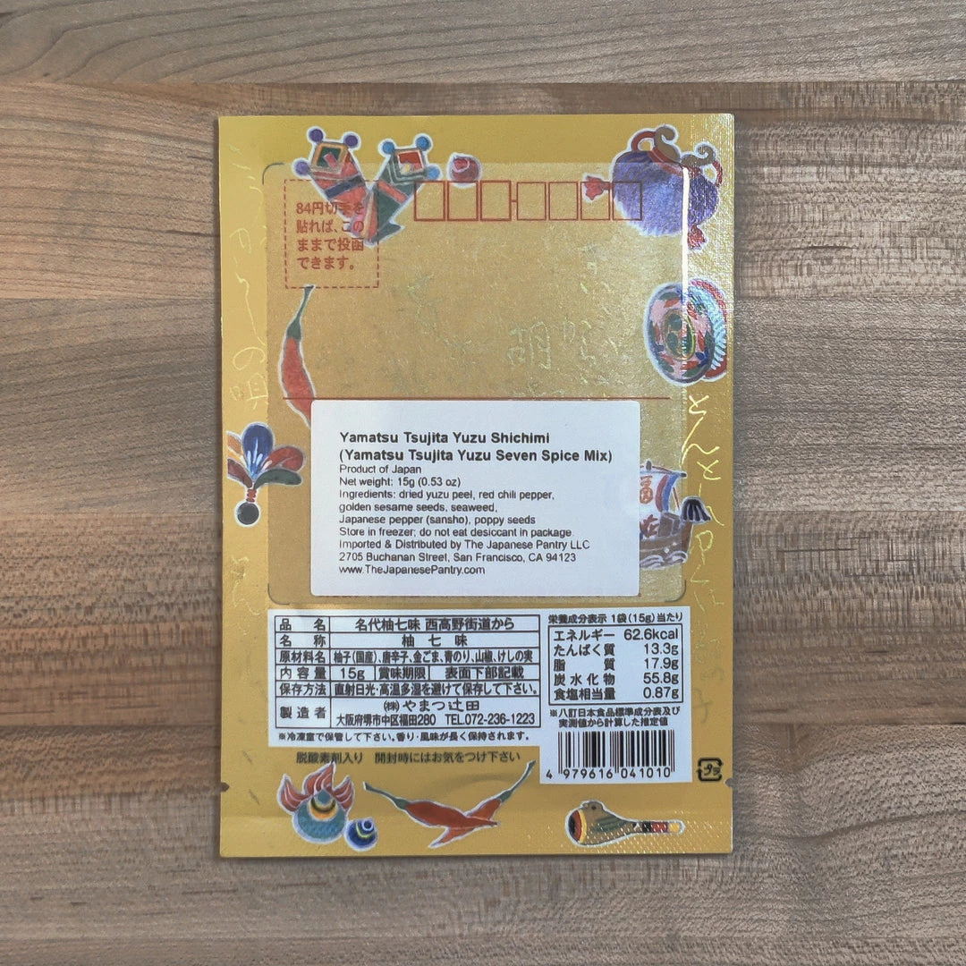 In this shichimi togarashi, Tsujita-san highlights the aroma and taste of dried yuzu. While not as spicy as the Tsujita-san’s regular shichimi togarashi, it still has a nice bit of heat. Use this yuzu shichimi togarashi on dishes where you want a citrus-y brightness, such as a corn miso soup or on top of grilled fish. Also goes great on grilled chicken.