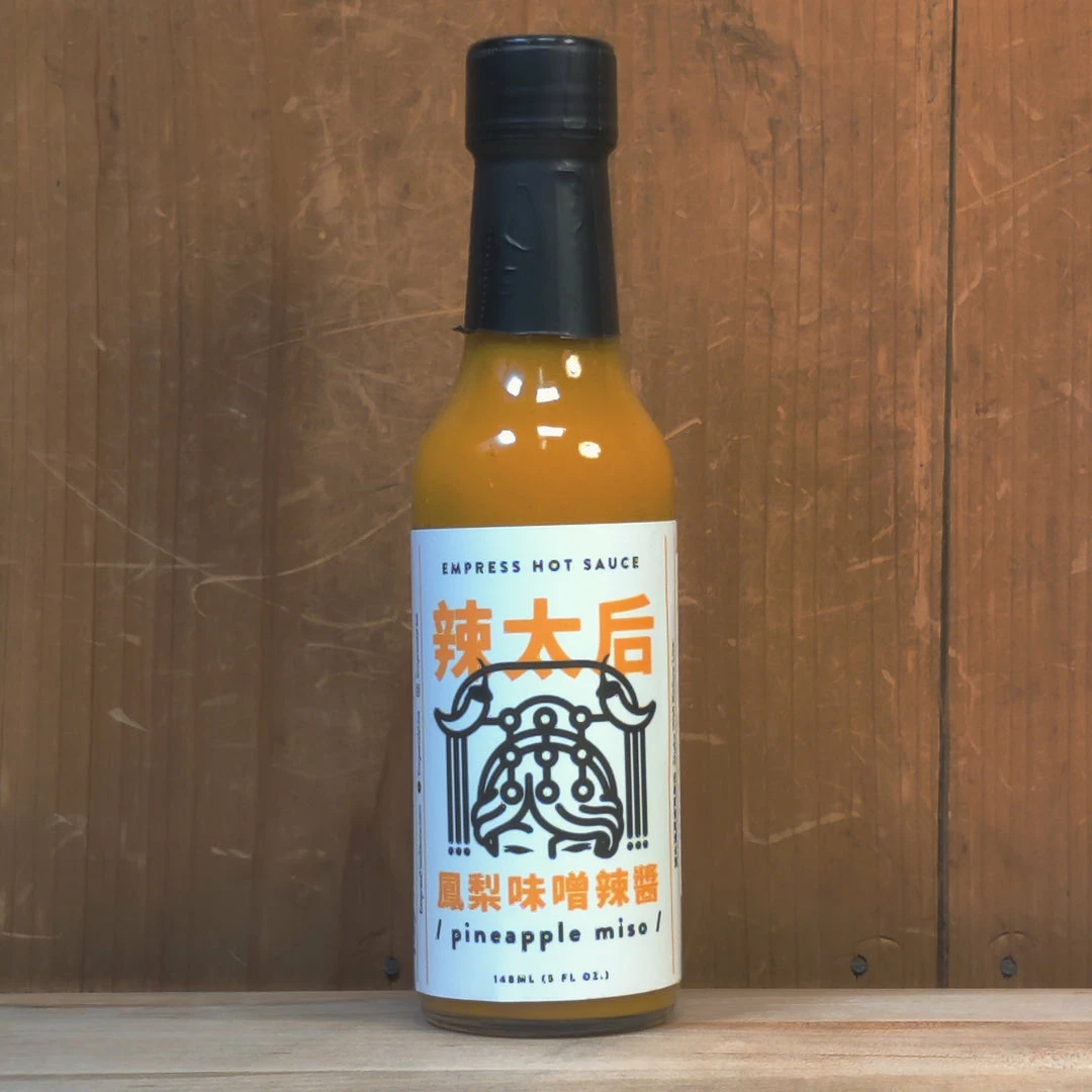 Empress’s ‘PMC’ (Pineapple Miso Chili) sauce, inspired by an Al Pastor Taco, combines the sweetness of Taiwanese pineapples, well-rounded savoriness of white miso, and freshness of cilantro to bring bright and mild heat to your meal. It’s the least spicy of all the Empress sauces, perfect with salads, seafood and in marinades.